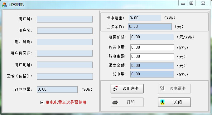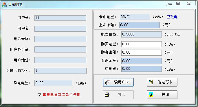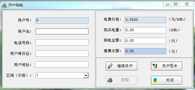 注意:區域(價格):目的是相同的區域價格電能表與用戶電能卡才可以相互使用。