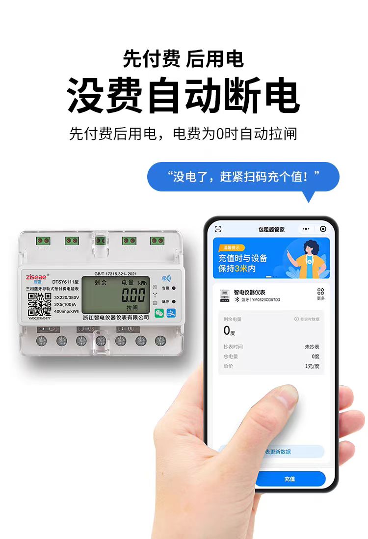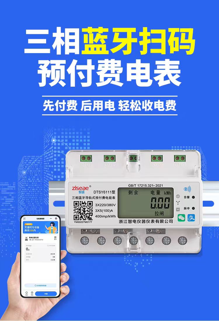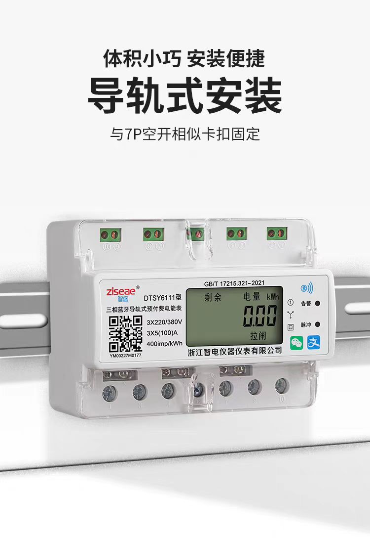 三相導(dǎo)軌式藍(lán)牙掃碼充值電表