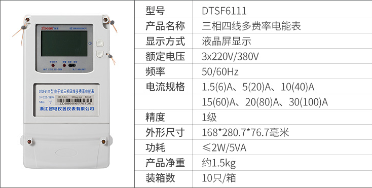 DTSF6111三相四線 DSSF6111 三相三線電子式多費率電能表(尖峰平谷電表),具有分時計量用戶所用電能功能,并可實現(xiàn)多種用電費率計費和集中抄表功能的電能計量電能表,該表技術性能符合GB/T17215.321-2008《1級和2級電子式交流有功電度表》和GB/T15284-2002《復費率(分時)電度表》國家標準的要求,適用于計量額定頻率為50Hz或60Hz三相交流有功電能。