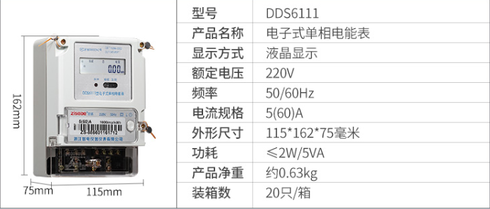 1、具有單向計量有功電能的功能,液晶顯示器顯示總電量;
